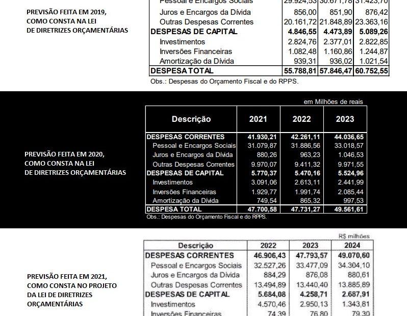 Haverá alguma diferença, pouco significativa no cômputo geral, entre a tabela abaixo e a divulgada pela secretaria estadual da Fazenda, na audiência pública da LDO. A baixa qualidade do documento anexado ao projeto da LDO 2022 não permite a leitura exata dos dados. Naquele evento, a Sefa também agrupou grupos que considera similares. Aqui, não. Está tudo separadinho.