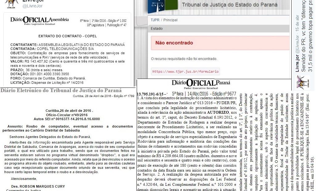 Se você ainda não segue o Livre.jor, no Twitter, separamos aqui algumas das informações que você deixou de receber em primeira mão. Sim, a vida digital é dura, multiconectada, hiperreal, mas você dá conta. Vamos dar uma mãozinha! Tudo que rolou de interessante  e exclusivo em abril está ali embaixo – com a reprodução dos documentos.